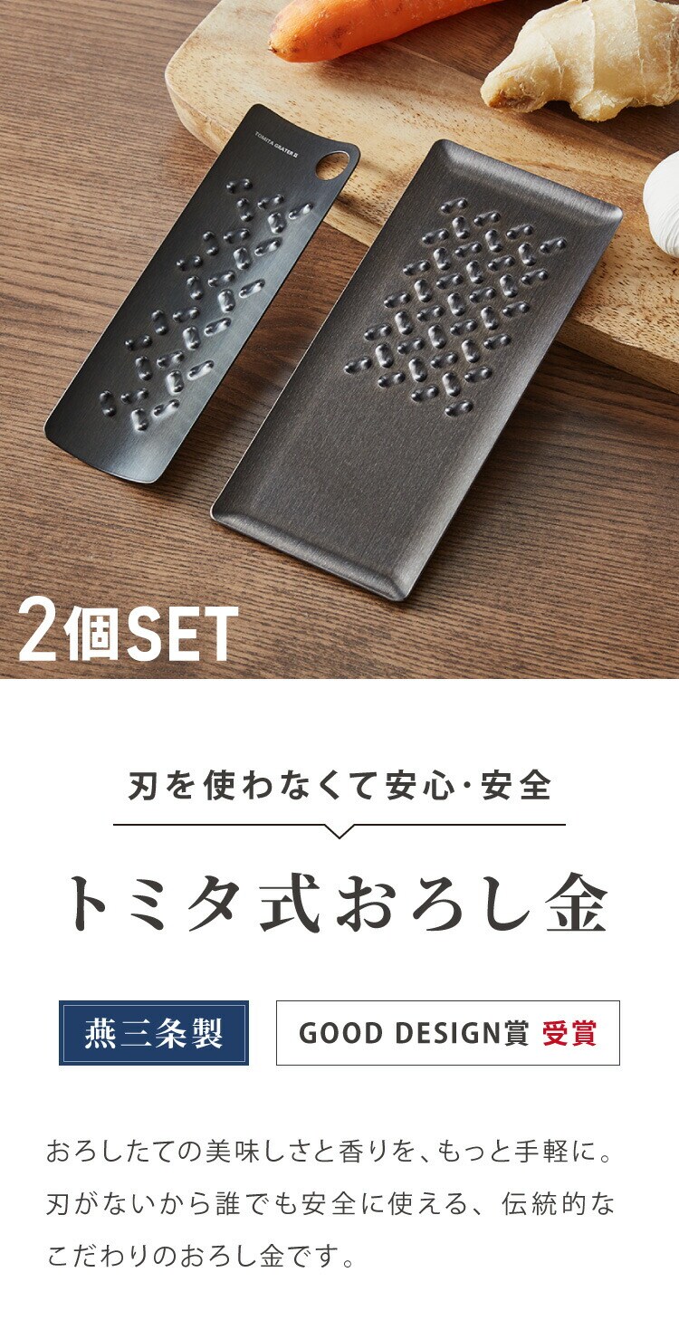 トミタ式おろし金 ブラック 2点セット 日本製 おろし器 すり器 おろし金 おろしがね 薬味おろし器 グレーター チーズグレーター 燕三条 ステンレス トミタ 艶麗 キッチン【送料無料】