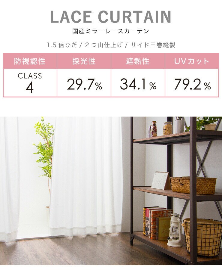 ミラーレースカーテン 2枚組 幅100cm 【国産 UVカット 紫外線カット 採光 ミラーレース】 既成サイズ 丈133cm 丈176cm 丈198cm 洗える 丸洗い おしゃれ 北欧 節電 省エネ エコ【送料無料】