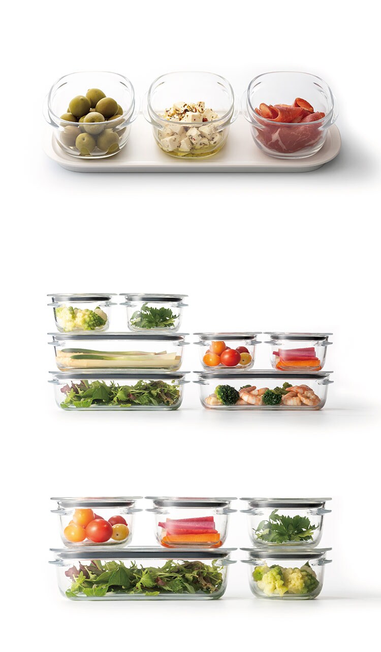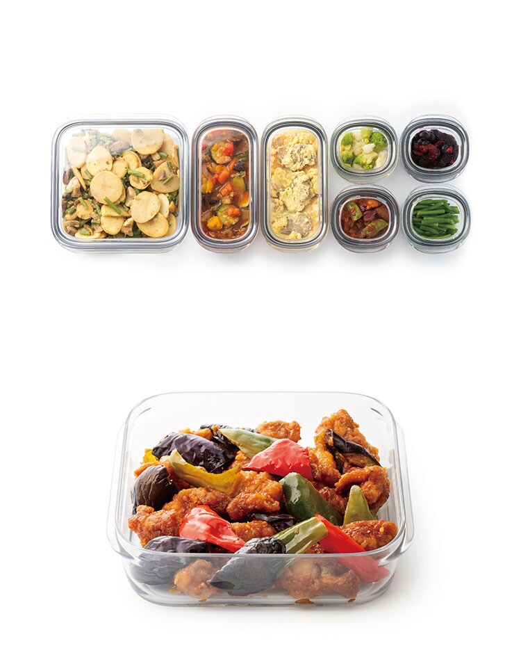 食品の保存管理や調理が行いやすく、収納時と使用時の使いやすさに配慮した保存容器。収納する場所に合わせてサイズ設定されており無駄なく収納ができます。