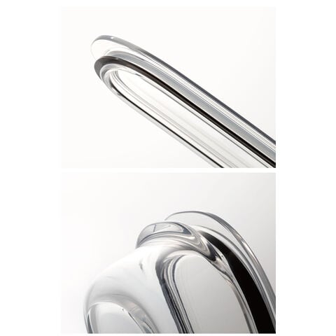 まるでガラスのような透明感。でもガラスじゃないから軽くて・割れない。日々使うアイテムとして、取り出したり洗ったりを繰り返すのに丈夫で軽い素材はとっても便利。必要以上に取り扱い神経質にならなくていいからどんどん使いまわせます。