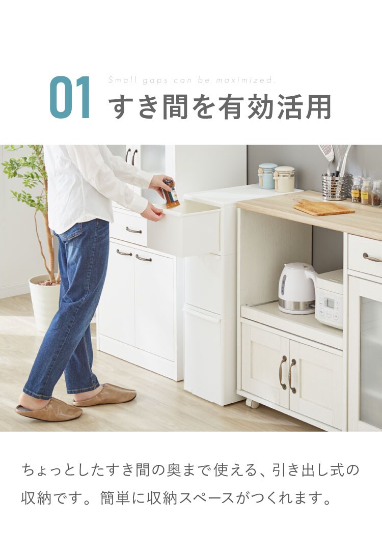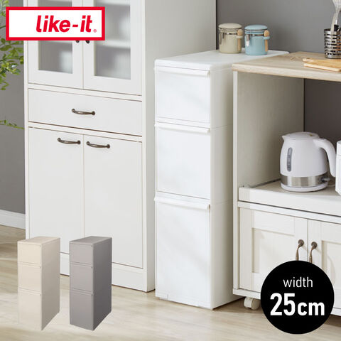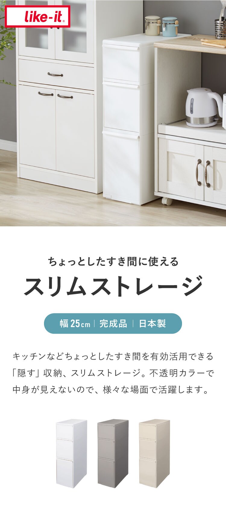 ライクイット ( like-it ) キッチン収納 引出し ワイド 3段 約幅25.5x奥46.5x高82cm オールホワイト 日本製 MS-111DL 隠す収納 幅25.5cm デットスペース すき間を活用【送料無料】