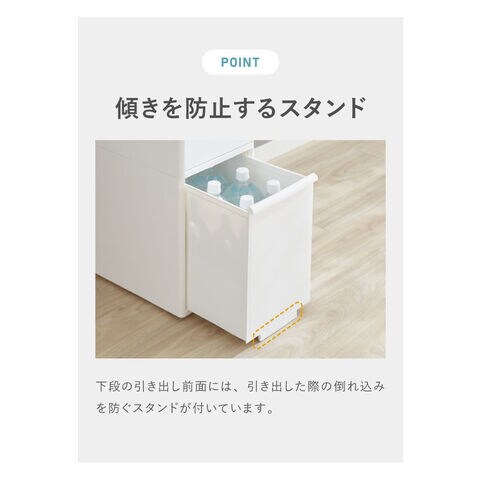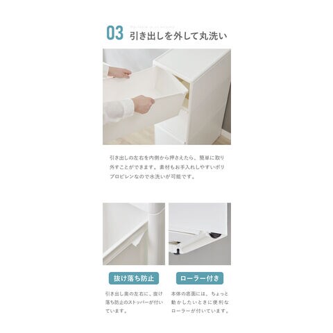 キッチンやサニタリー、リビングで使える「like-it(ライクイット)」の引き出しストッカー「スリムストレージ」です。ミディストッカーはデッドスペースになりがちな隙間にも収まりやすい幅25.5cm。スリムながら高さと奥行があり、3段式なので収納力は抜群。使いやすさにこだわった機能で出し入れがしやすいのもポイントです。