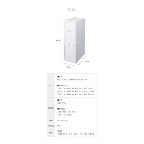サイズ(約):幅25.5×高さ82×奥行46.5cm