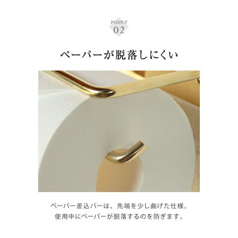 トイレットペーパー差込バーは、先端を少し曲げた仕様ですので、ペーパーの転落防止になります。