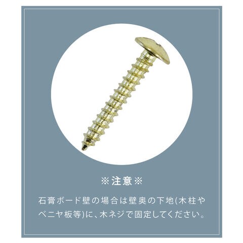 ※石膏ボード壁の場合は、壁奥の下地(木柱やベニヤ板等)に、木ネジで固定をお願い致します。