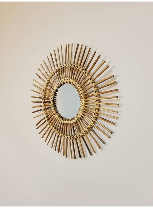 ウォールミラー ラタン 幅63cm 玄関 廊下 飾り おしゃれ 北欧 鏡 壁掛け 丸型 円形 洗面鏡 アンティーク調 モダン シンプル 新生活 一人暮らし【送料無料】