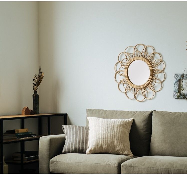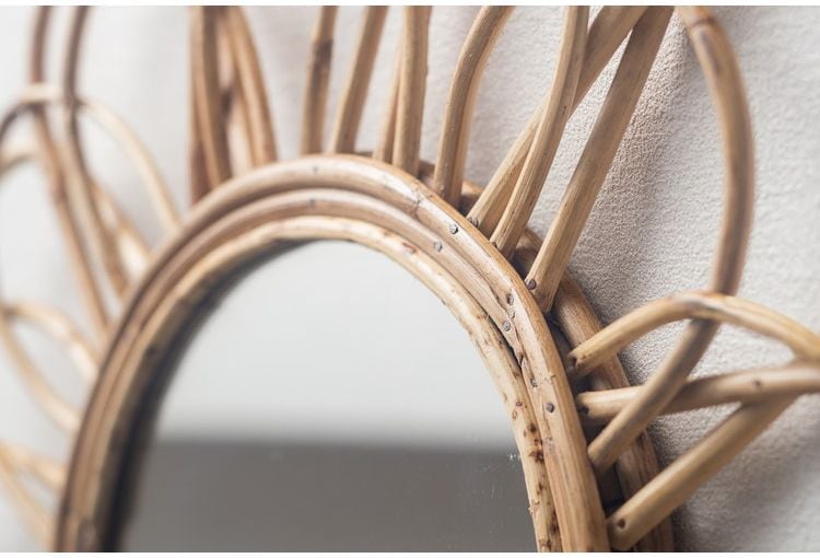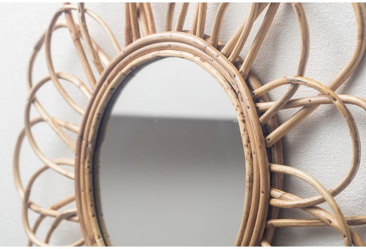 ウォールミラー ラタン 幅57cm 玄関 廊下 飾り おしゃれ 北欧 鏡 壁掛け 丸型 円形 洗面鏡 アンティーク調 モダン シンプル 新生活 一人暮らし【送料無料】