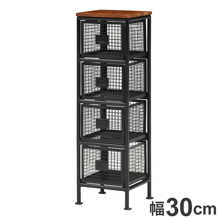 スチール メッシュチェスト 縦型4杯タイプ 幅30cm 棚 ヴィンテージ モダン おしゃれ 北欧 天然木 木製 アイアン シンプル 収納 リビング 子ども部屋 新生活 一人暮らし【送料無料】