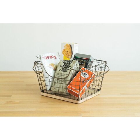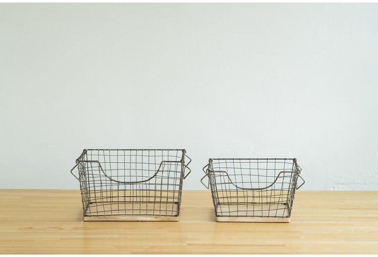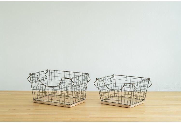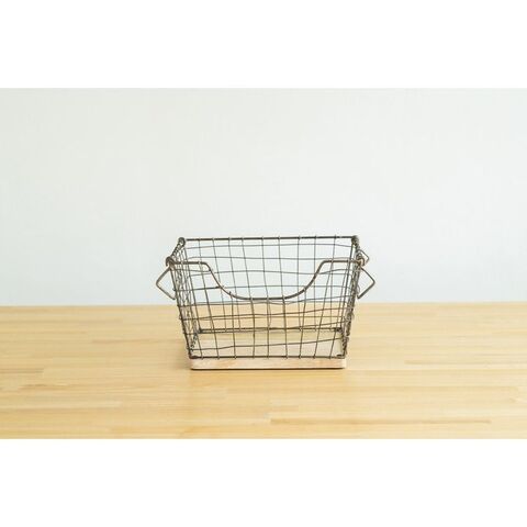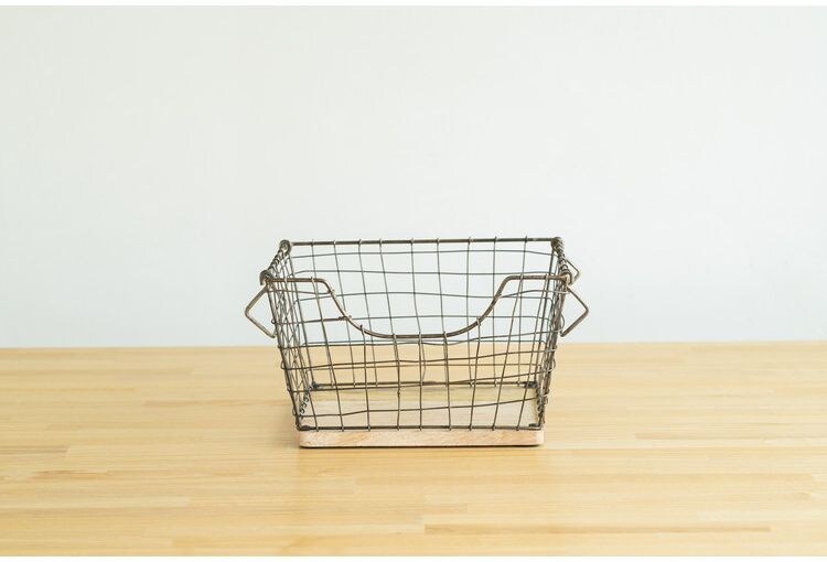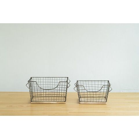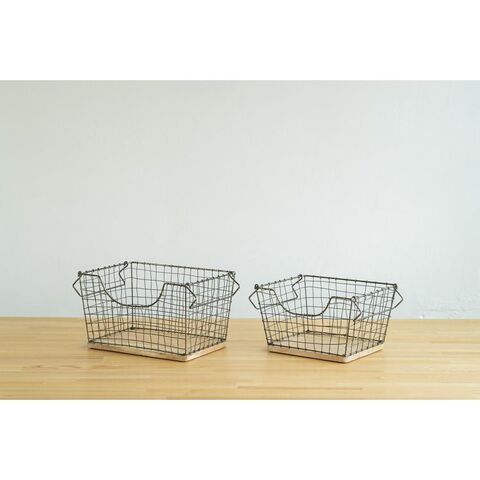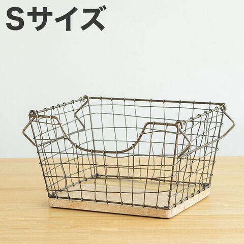 アンティーク調 ワイヤーバスケット Sサイズ シンプル スチール おしゃれ 北欧 かわいい 底板 天然木使用 一人暮らし 雑貨 雑貨入れ 収納【送料無料】