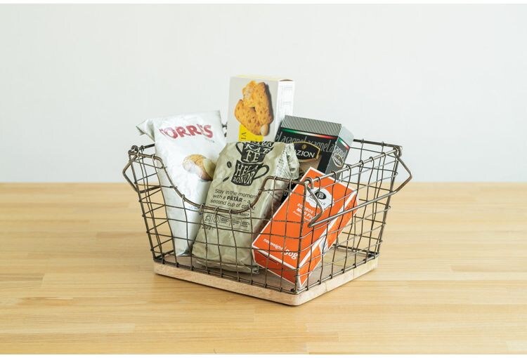 お買い物カゴのような、重ねて収納できるバスケットです。
