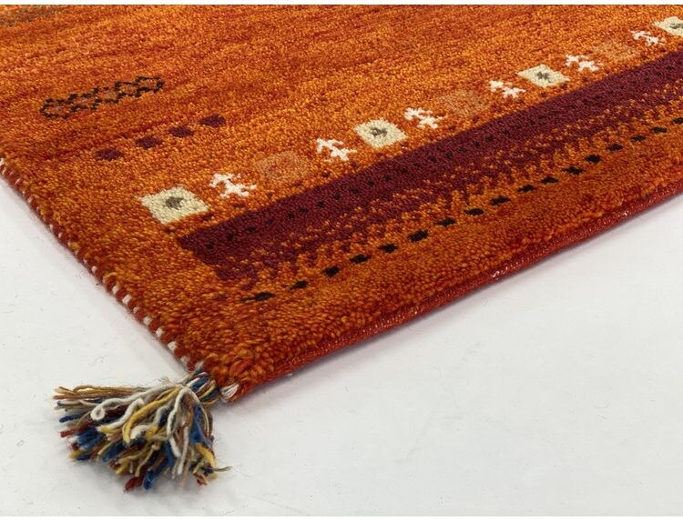 イランの遊牧民の手で織られるラグで、色づかいやユニークな文様が特徴です。