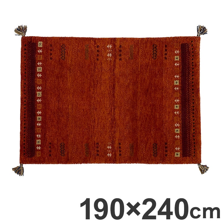 ラグ 190×240cm オレンジ 赤 ウール コットン 天然素材 オールシーズン シンプル おしゃれ 北欧 絨毯 カーペット マット リビングマット 新生活 一人暮らし【送料無料】