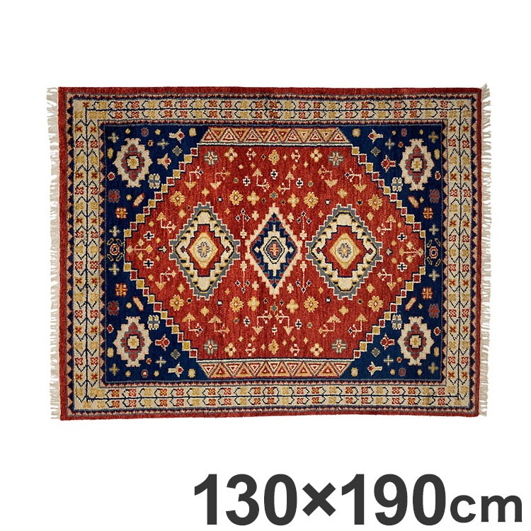 ラグ 130×190cm トライバル 部族絨毯風 ウール コットン 天然素材 オールシーズン シンプル おしゃれ 北欧 絨毯 カーペット マット リビングマット 新生活 一人暮らし【送料無料】