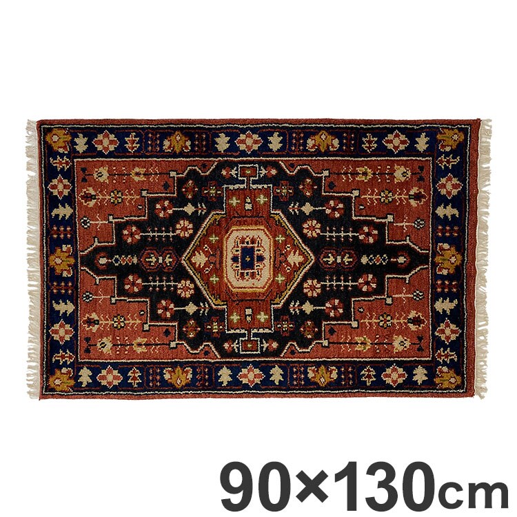 ラグ 90×130cm 柄 トライバル 部族絨毯風 ウール コットン 天然素材 オールシーズン シンプル おしゃれ 北欧 絨毯 カーペット マット リビングマット 新生活 一人暮らし【送料無料】