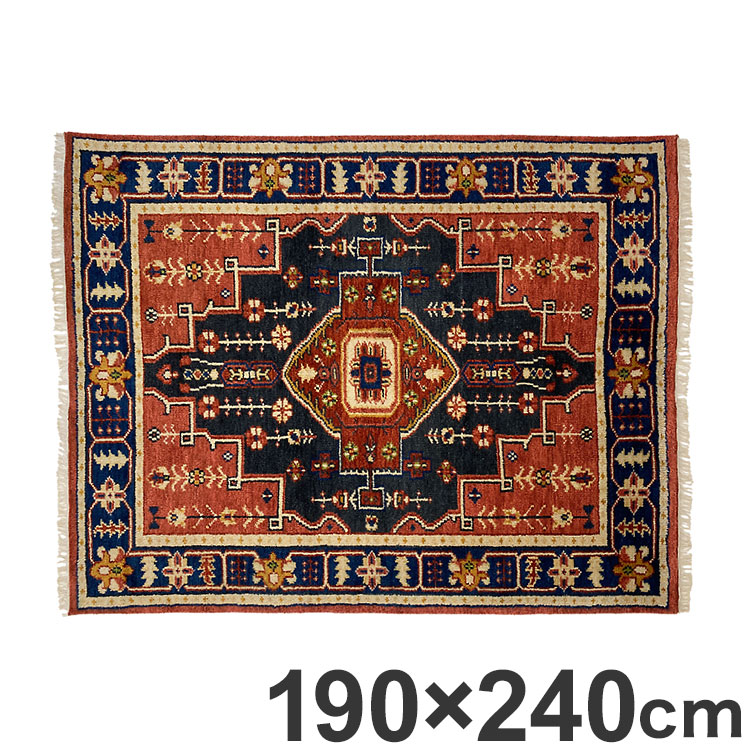ラグ 190×240cm 柄 トライバル 部族絨毯風 ウール コットン 天然素材 オールシーズン シンプル おしゃれ 北欧 絨毯 カーペット マット リビングマット 新生活 一人暮らし【送料無料】