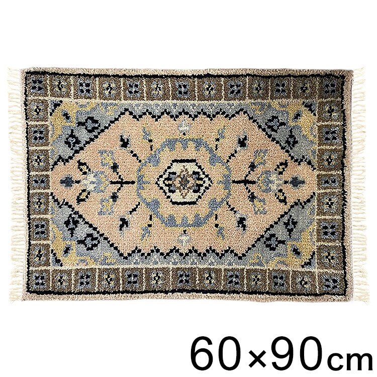 60×90トライバルマットFLOWER インテリア ラグ カーペット ラグマット ラグカーペット リビング 絨毯 玄関マット 玄関 ミニマット【送料無料】