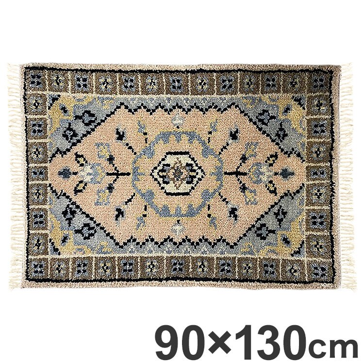 ラグ 90×130cm 花柄 トライバル 部族絨毯風 ウール コットン 天然素材 オールシーズン シンプル おしゃれ 北欧 絨毯 カーペット マット リビングマット 新生活 一人暮らし【送料無料】