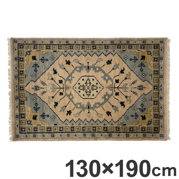 ラグ 130×190cm 花柄 トライバル 部族絨毯風 ウール コットン 天然素材 オールシーズン シンプル おしゃれ 北欧 絨毯 カーペット マット リビングマット 新生活 一人暮らし【送料無料】