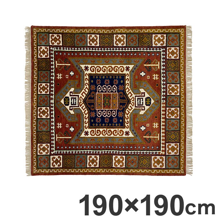 ラグ 190×190cm フラッグ トライバル 部族絨毯風 ウール コットン 天然素材 オールシーズン シンプル おしゃれ 北欧 絨毯 カーペット マット リビングマット 新生活 一人暮らし【送料無料】