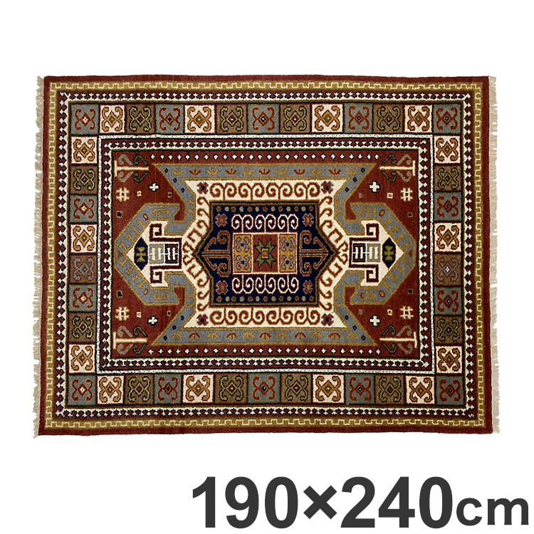 ラグ 190×240cm フラッグ トライバル 部族絨毯風 ウール コットン 天然素材 オールシーズン シンプル おしゃれ 北欧 絨毯 カーペット マット リビングマット 新生活 一人暮らし【送料無料】