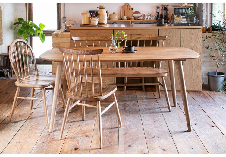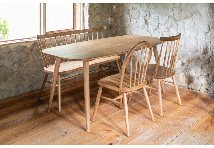 アッシュ無垢材を使用し、北欧風の柔らかなシルエットに仕上げたダイニングテーブルです。