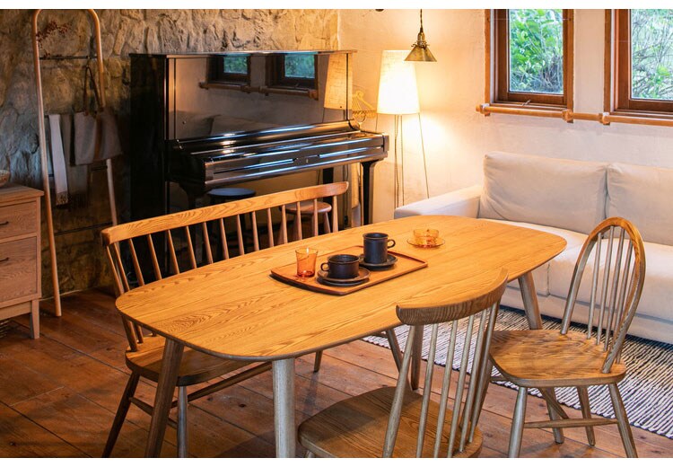 癖の少ない風合いで、フローリング材や他の家具とも調和します。