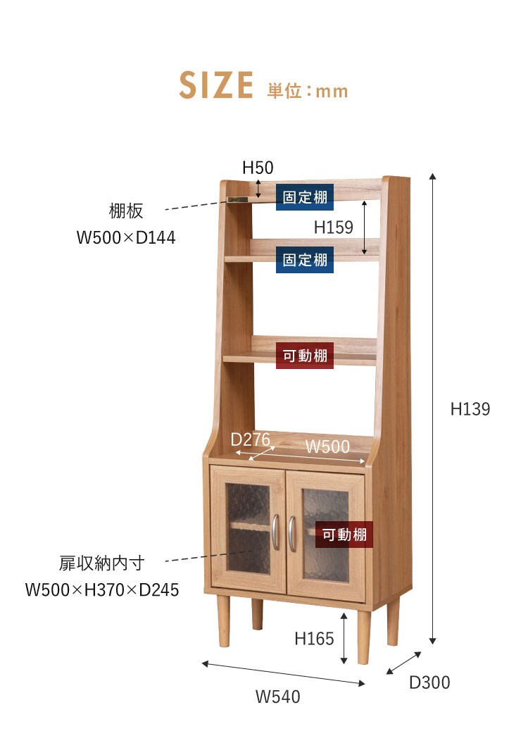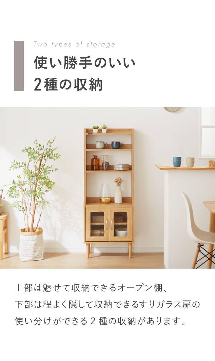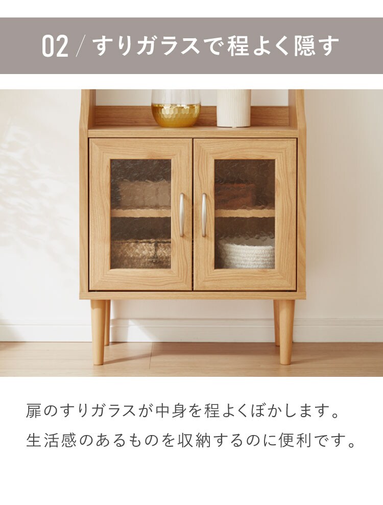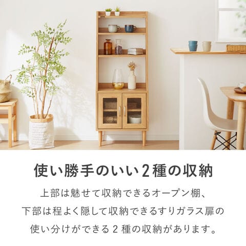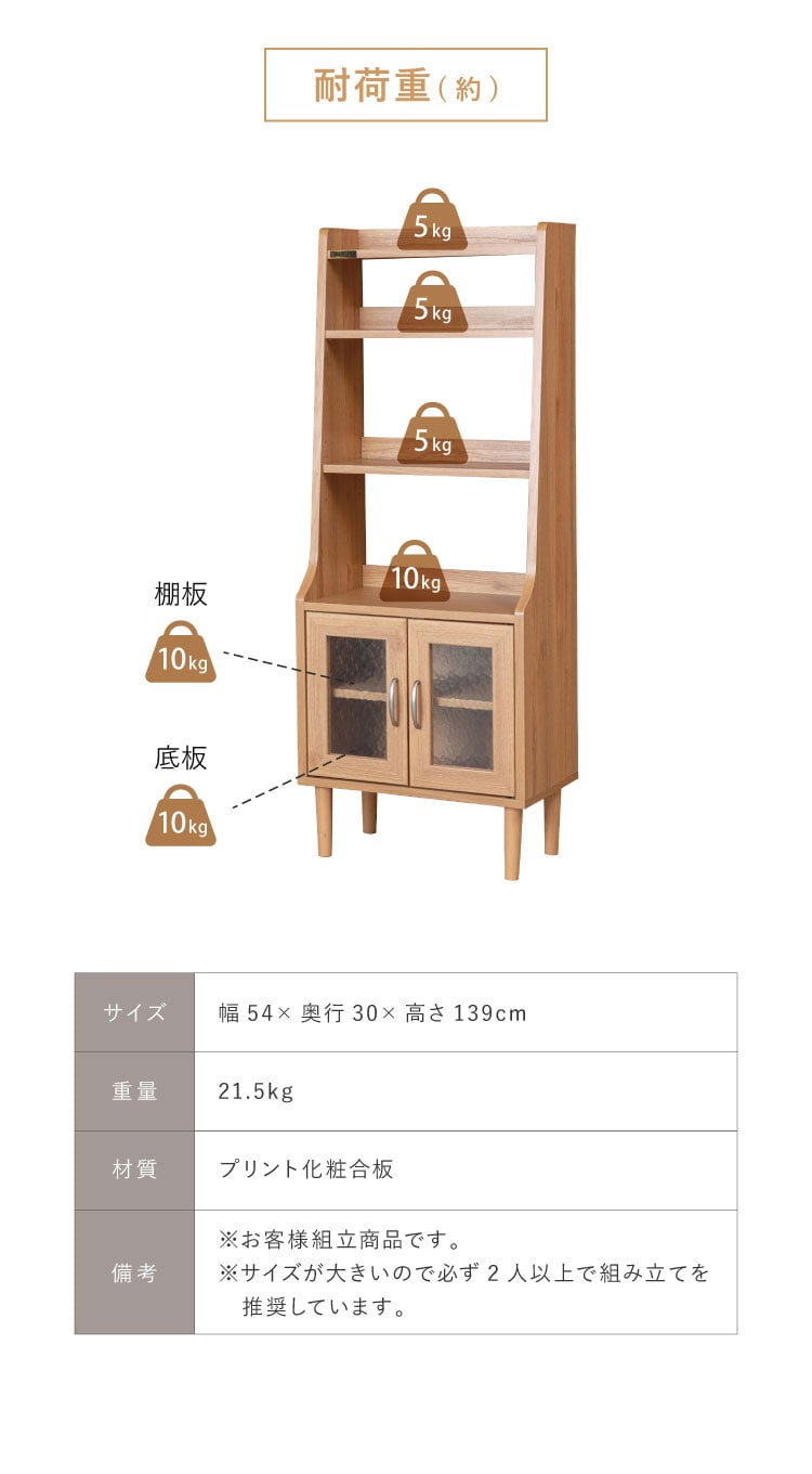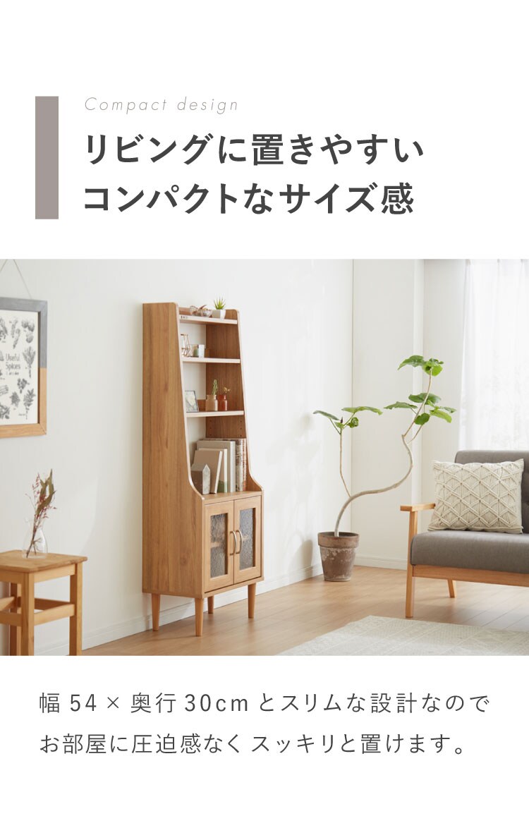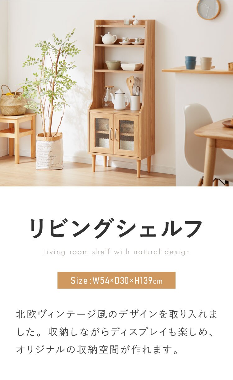 シェルフ オープン収納 幅54cm 木目調 擦りガラス扉 ヴィンテージ レトロ おしゃれ 北欧 棚 ラック スリム 収納棚 食器棚 シンプル オープンラック ディスプレイラック【送料無料】