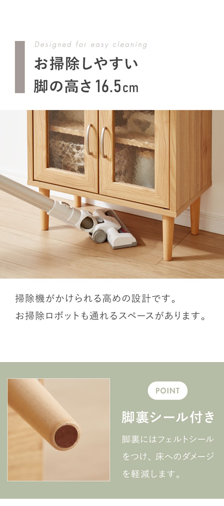 ・脚部を華奢なシルエットにしています。高さもあるのでお掃除ロボット対応。
