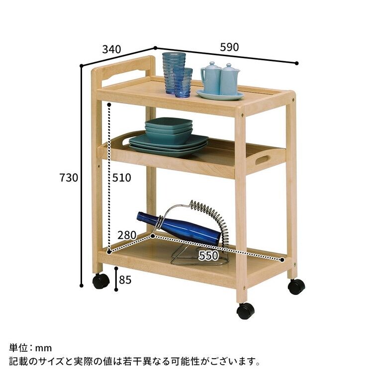 キッチンワゴン マルチワゴン 天然木 キャスター付き トレー付き お盆付き シンプル おしゃれ 北欧 便利 木製 新生活 一人暮らし【送料無料】