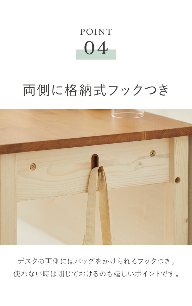 ・天板はパイン無垢材で、節やはっきりとした木目が楽しめます。