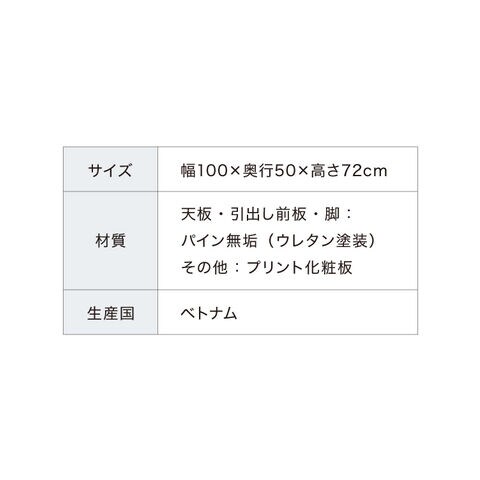 天板・引出し前板・脚:パイン無垢 ウレタン塗装