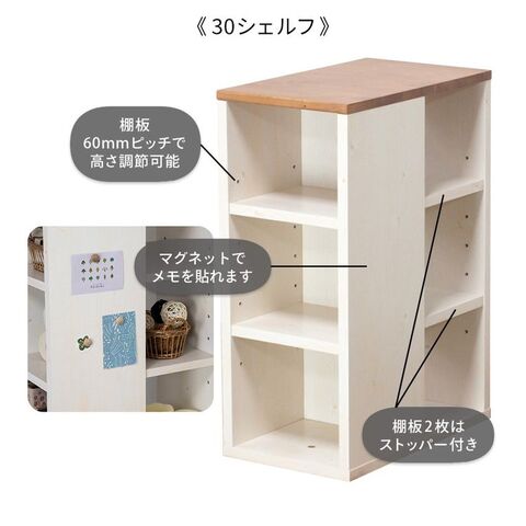 天板:パイン材 ウレタン塗装/棚板・本体側面 プリント