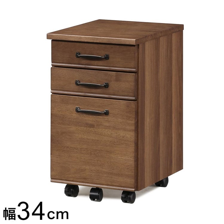 仕切り板:引き出し最下段1枚入り/引き出し最下段フルオープンレール(上2段はレールなし)/手前のキャスターにストッパー付き