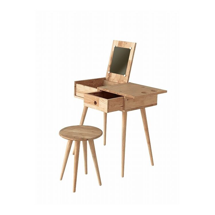 ドレッサーセット 天然木 木製 コンパクト ミラー付き スツール付き 化粧台 鏡 収納 デスク 机 NATURAL SIGNATURE おしゃれ 北欧 シンプル 新生活 一人暮らし【送料無料】