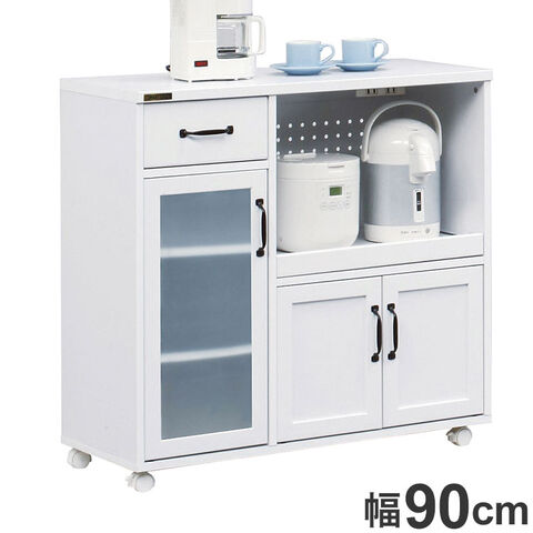 キッチンカウンター 幅90cm キャスター付き ホワイト シンプル かわいい レンジ台 レンジボード 炊飯器 引き出し おしゃれ 北欧 新生活 一人暮らし【送料無料】