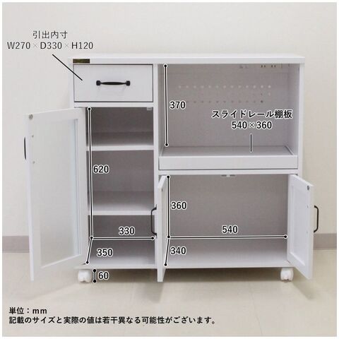・耐荷重 天板:約30kg 可動棚板:約20kg スライドカウンター:約20kg
