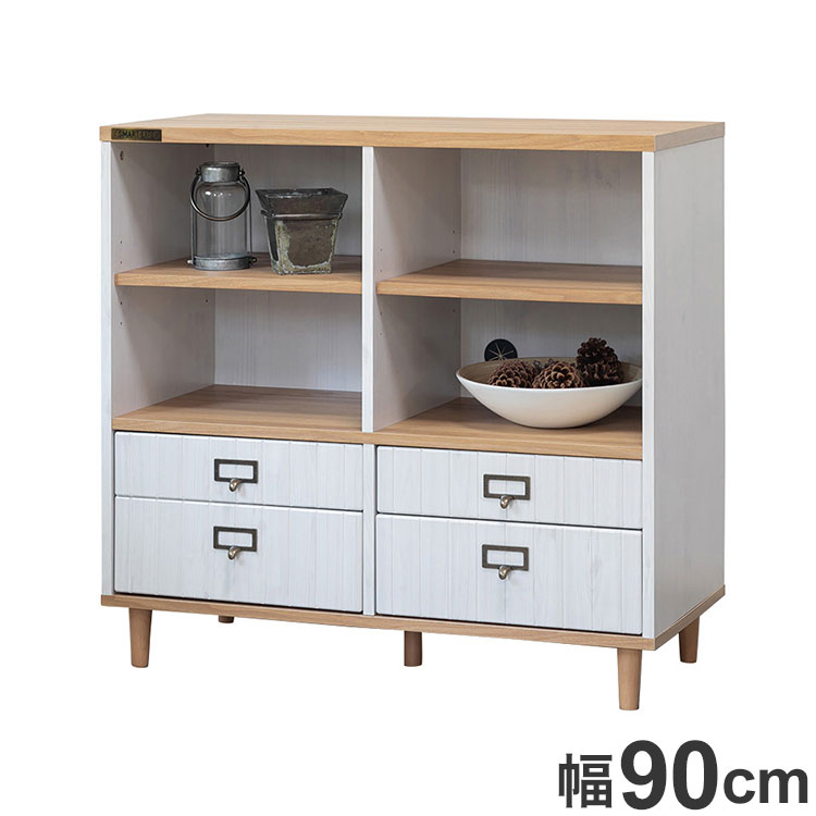 キャビネット 幅90cm レンジ台 炊飯器 木目調 オープン収納 シンプル コンパクト おしゃれ 北欧 かわいい 引き出し 新生活 一人暮らし【送料無料】