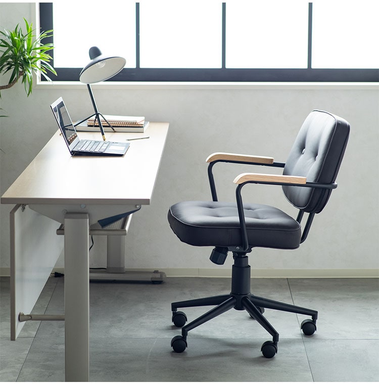 肘付ガス圧チェアー エイム BK デスクチェア おしゃれ 昇降式 ソフトレザー オフィスチェア イス PCチェア 学習チェア ワークチェア 事務椅子 いす 椅子 チェア チェアー【送料無料】