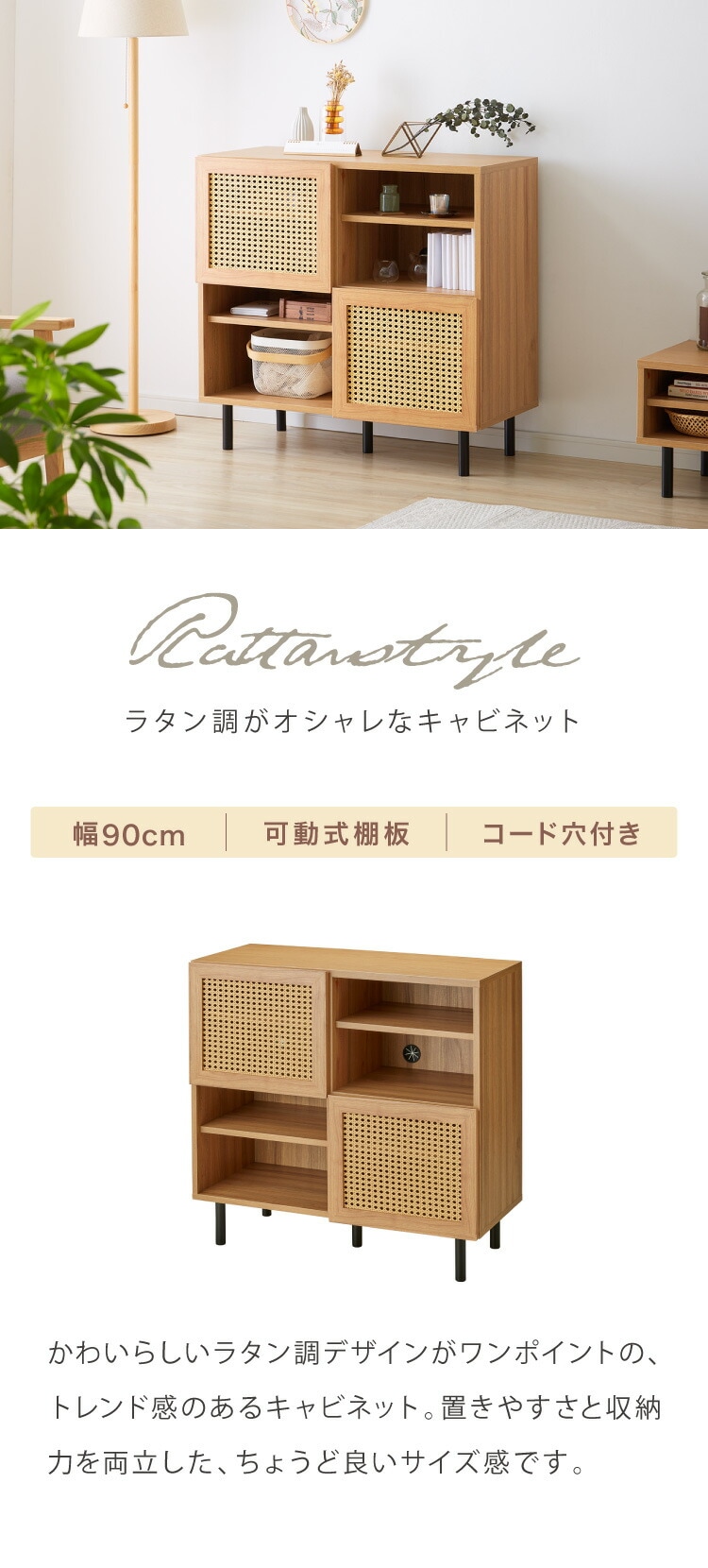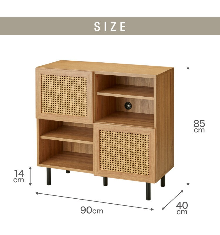 収納棚 幅90cm ラタン調 キャビネット サイドボード リビングボード リビング 棚 収納 サイドチェスト サイドキャビネット ラタン風 脚付き スチール脚 木目調 おしゃれ 韓国インテリア【送料無料】
