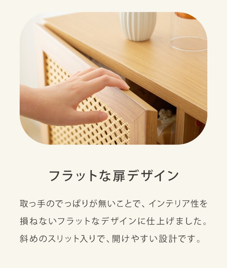前板はラタン風素材をカゴメ編みして仕上げています。