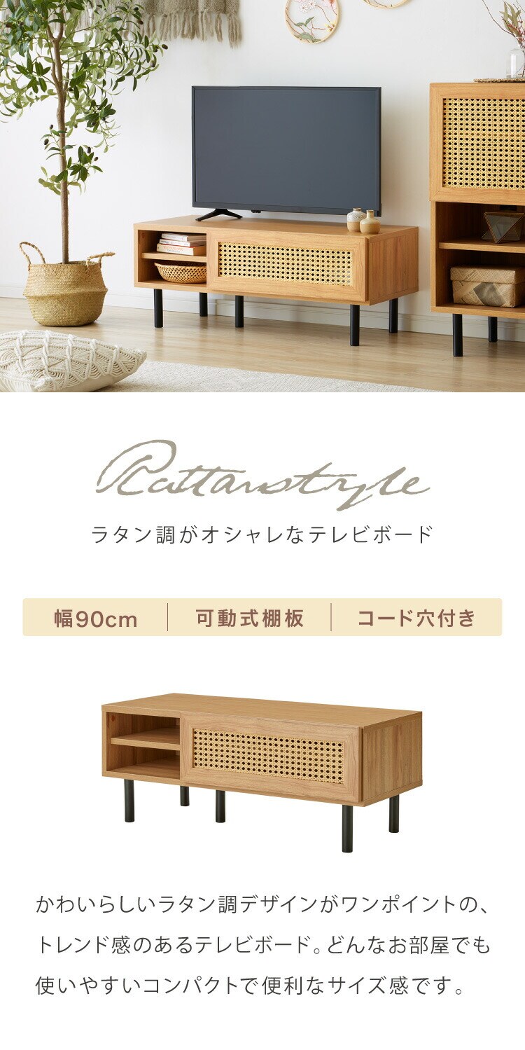 テレビ台 幅90cm テレビボード ラタン調 コード穴 脚付き テレビラック ローボード TVボード TV台 収納棚 リビング 収納 ラタン風 木製 スチール脚 木目調 おしゃれ 韓国インテリア【送料無料】