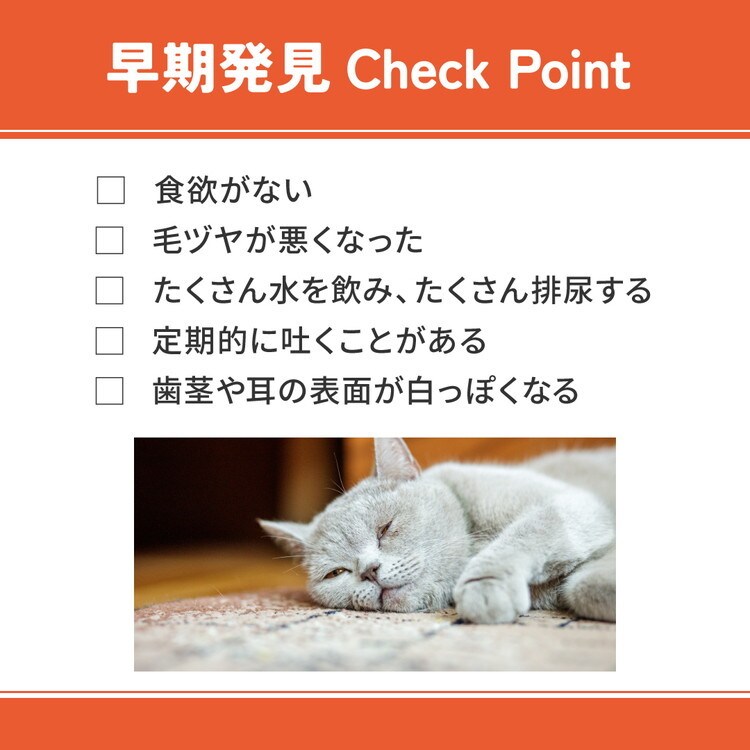 「VetsWell 腎臓ケア」は猫の慢性腎臓病に配慮し、特別に調製された食事療法食です。この食事は、慢性腎臓病の食事療法のため、リンとタンパク質の含有量を調整*1、消化性の高いタンパク質*2を配合しています。また腎臓の健康維持に配慮し、オメガ3系脂肪酸(EPA、DHA)を配合*3。エネルギー含有量を調整し、少ない食事量でも必要なエネルギーを摂取できるように配慮しています。