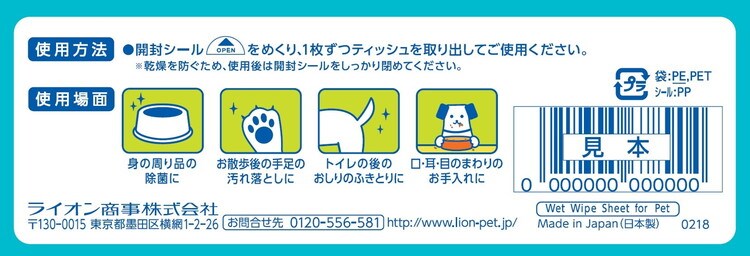 ・本品はペットのからだ用のふきとりシートです。用途外に使用しないでください。