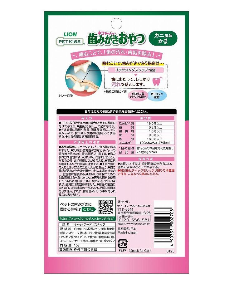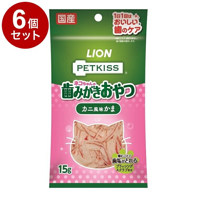 【6個セット】 ライオンペット PETKISS ネコちゃんの歯みがきおやつ カニ風味かま 15g【ポイント10倍】
