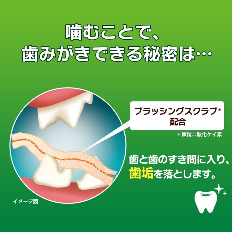・噛むことで歯垢を除去して、歯垢の沈着を防いで息もキレイ。