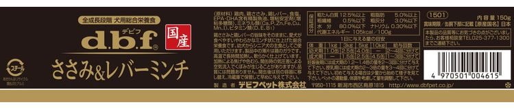 鶏肉ささみと鶏レバーの旨味をそのままに、食べやすいやわらかなミンチ状に仕上げた総合栄養食です。幼犬から高齢犬の主食としてご使用いただけます。