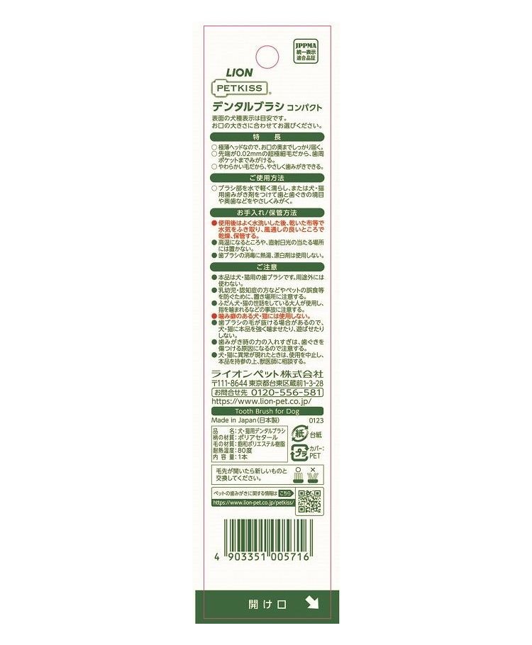 【4個セット】 ライオンペット PETKISS デンタルブラシ コンパクト 1本【ポイント10倍】のレビュー