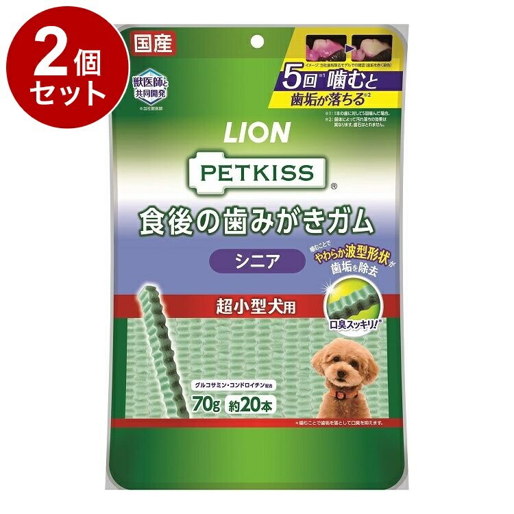 【2個セット】 ライオンペット PETKISS 食後の歯みがきガム シニア 超小型犬用 70g【ポイント10倍】