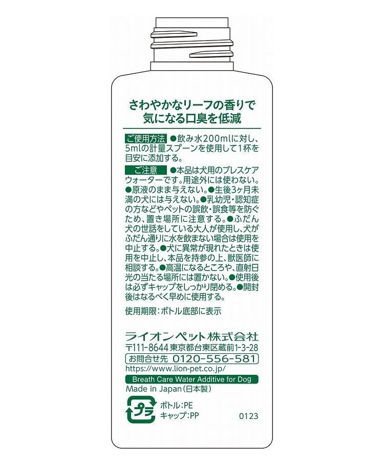 ・本製品は犬用のブレスケアウォーターです。他の目的に使用しないでください。