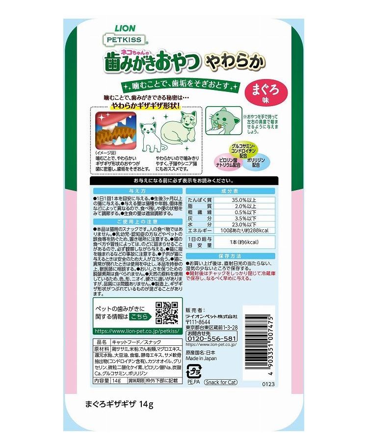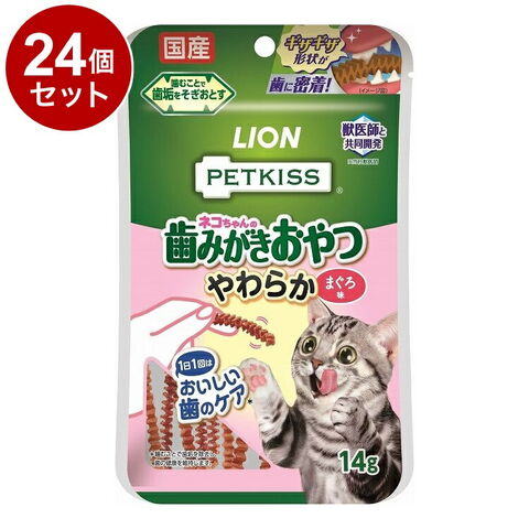 【24個セット】 ライオンペット PETKISS ネコちゃんの歯みがきおやつ やわらか まぐろ味 14g【ポイント10倍】 【送料無料】